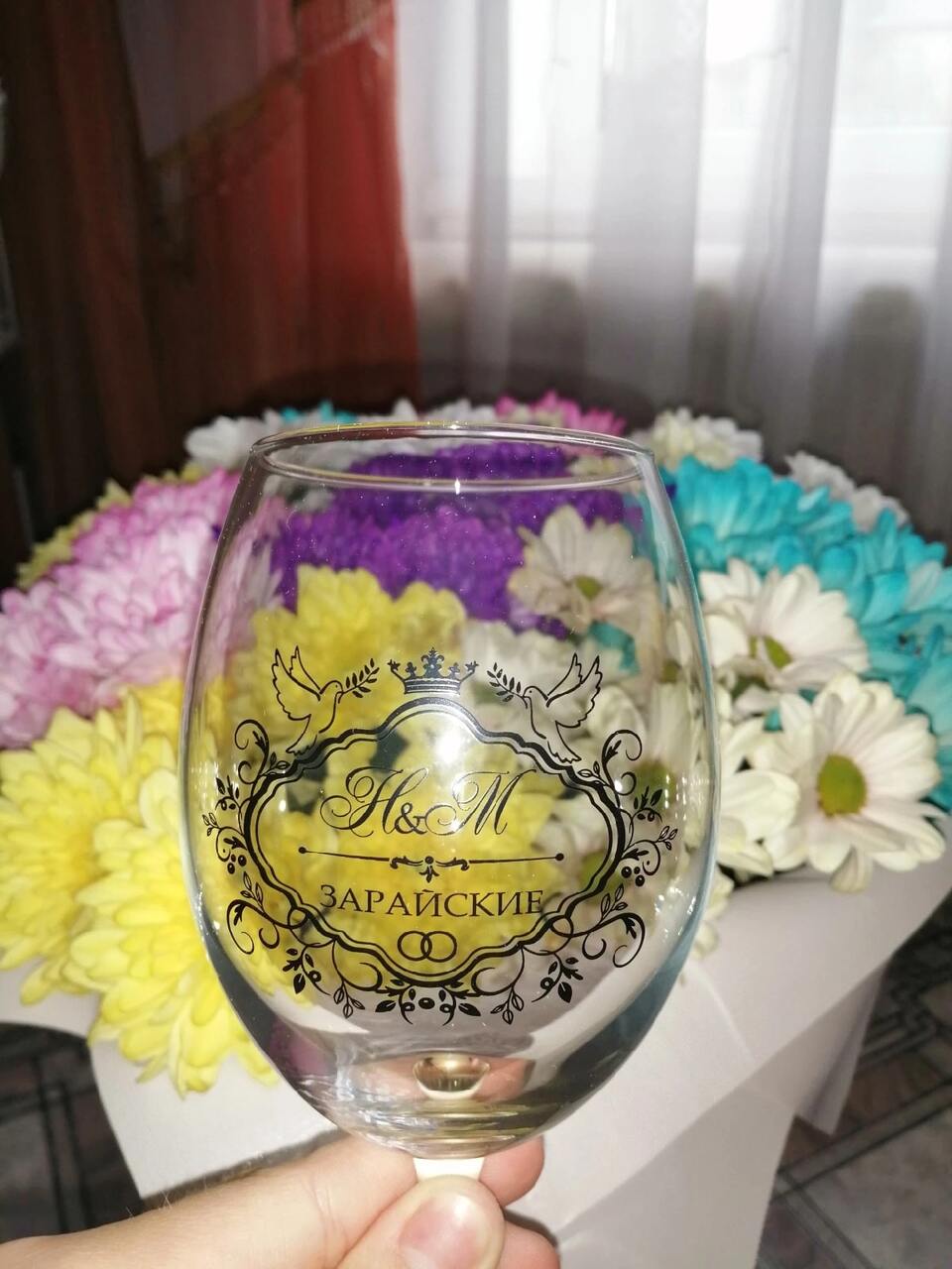 Заказывала 2 бокала для вина. Это так круто и красиво получилось! Красивая упаковка, быстрая доставка! Красивый подарок! Спасибо большое Вам!